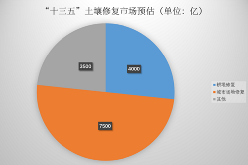 構樂觀估計,“十三五”期間,我國土壤修整市場的空間可以突破1.5萬億元,其中又以耕地與城市場地修整為,前者有近4000億的潛在空間,后者則達到7500億之多。
