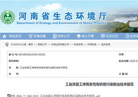 2020年3月27日,河南省生態環境廳發布了《工業涂裝工序揮發性有機物污染防治技術規范》(DB41/T 1946-2020)