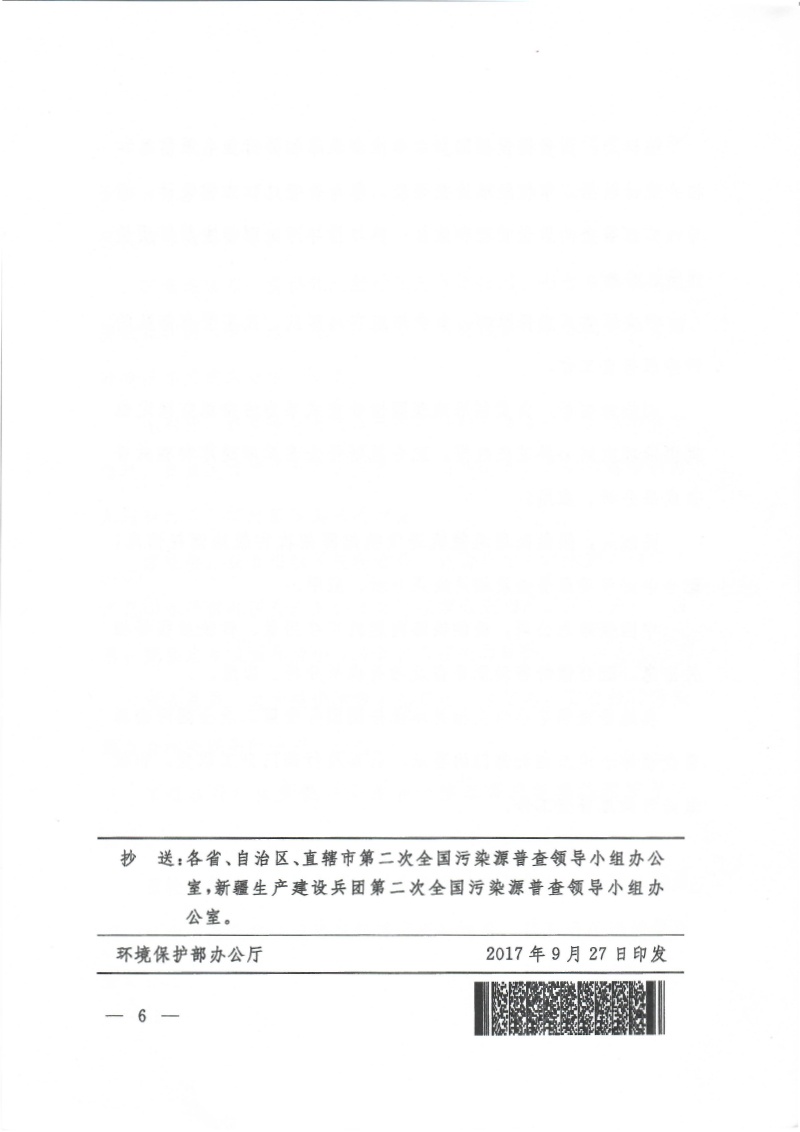 國污普【2017】4號關于印發《第二次全國污染源普查部門分工》的通知