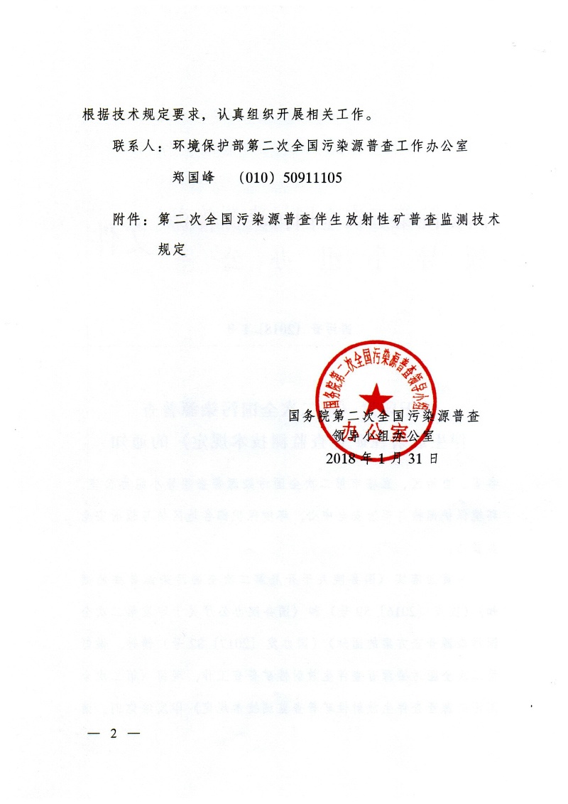 國污普【2018】1號關(guān)于印發(fā)《第二次全國污染源普查伴生放射性礦普查檢測技術(shù)規(guī)定》的通知全文
