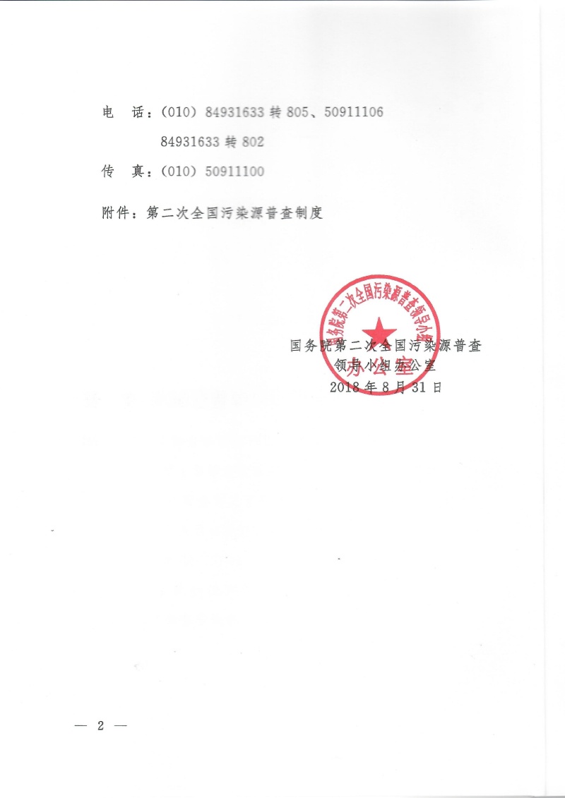 國污普【2018】15號關于印發第二次全國污染源普查制度的通知