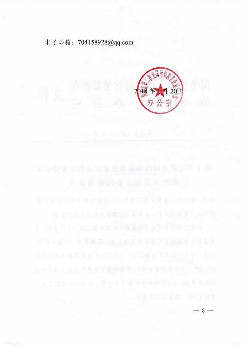 上一篇:豫污普辦【2018】3號轉發環保部、國家質檢總局關于開展第二次全國污染源普查生活源鍋爐清查工作的通知 下一篇:豫污普辦【2018】5號關于印發河南省第二次全國污染源普查工作要點的通知