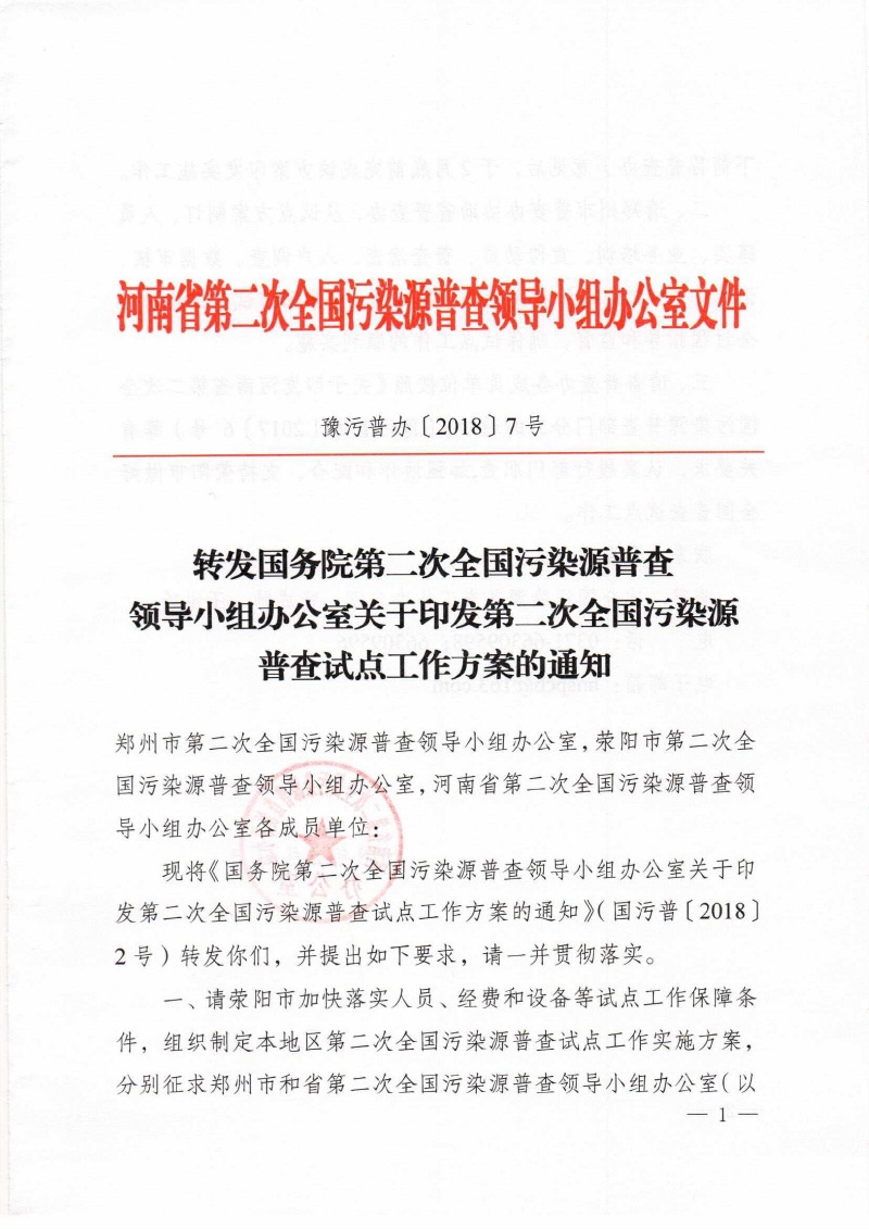 豫污普辦【2018】7號(hào)河南省第二次全國(guó)污染源普查領(lǐng)導(dǎo)小組辦公室轉(zhuǎn)發(fā)國(guó)務(wù)院第二次全國(guó)污染源普查領(lǐng)導(dǎo)小組辦公室關(guān)于印發(fā)第二次全國(guó)污染源普查試點(diǎn)工作方案的通知