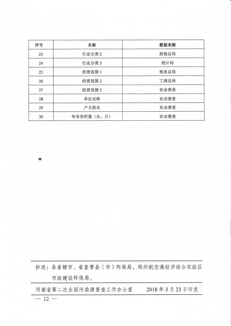 上一篇:豫污普辦【2018】9號關(guān)于做好河南省普查員和普查指導員選聘及管理工作通知 下一篇:豫污普辦【2018】11號轉(zhuǎn)發(fā)國務院第二次全國污染源普查領(lǐng)導小組辦公室關(guān)于印發(fā)第二次全國污染源普查清查技術(shù)規(guī)定的通知