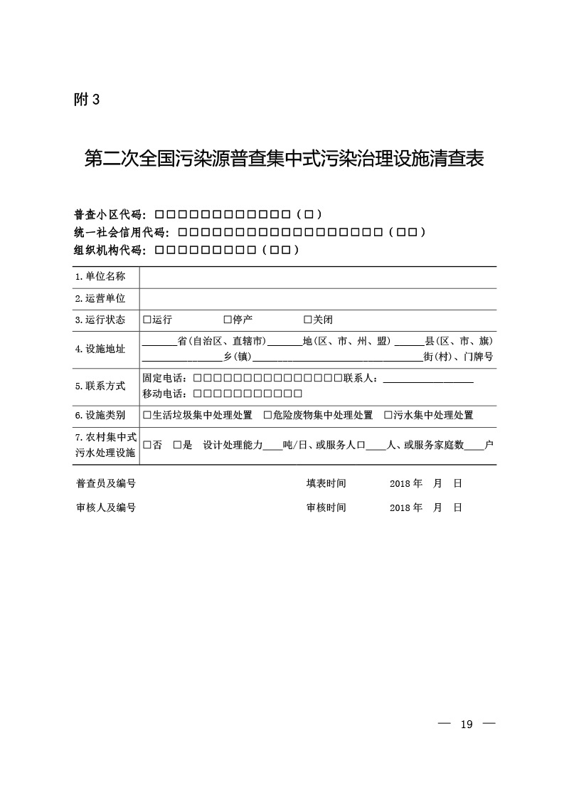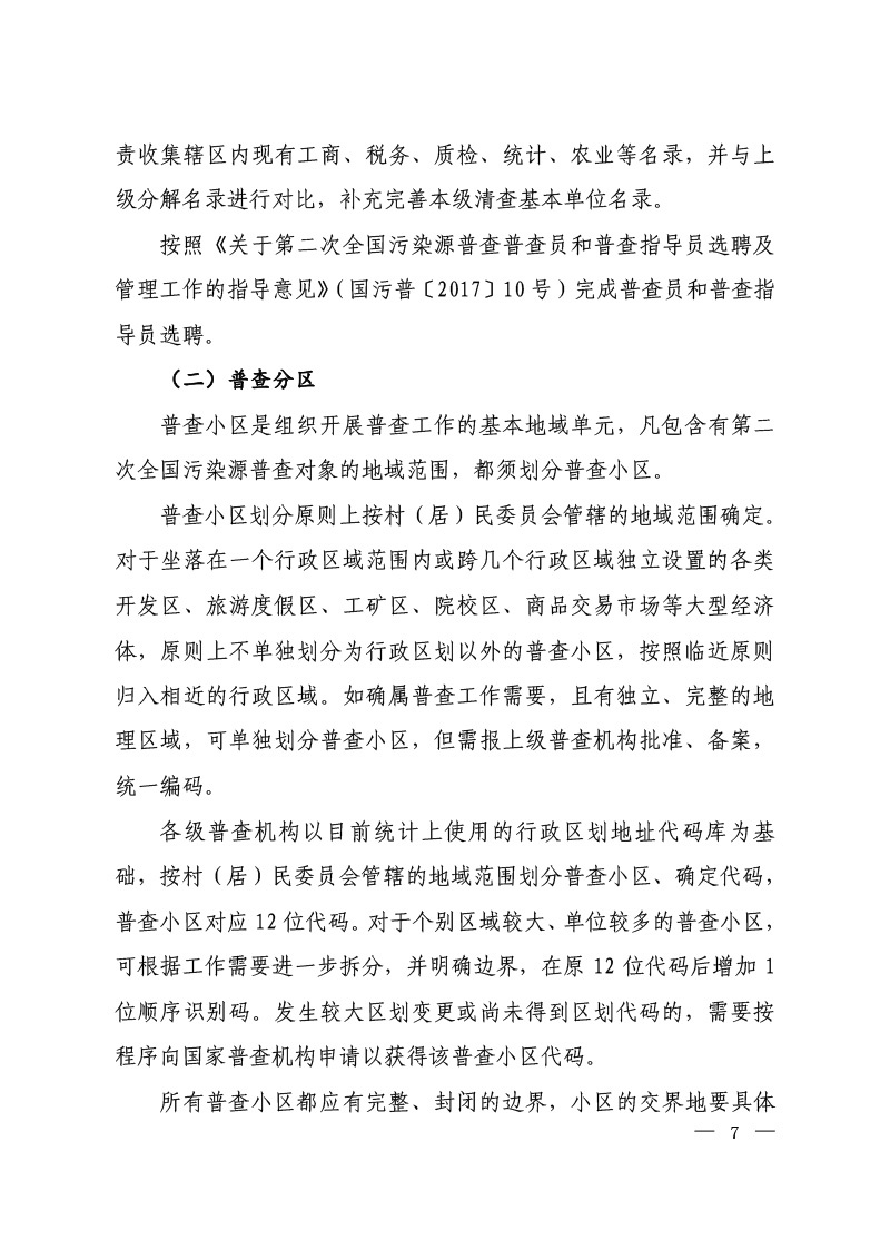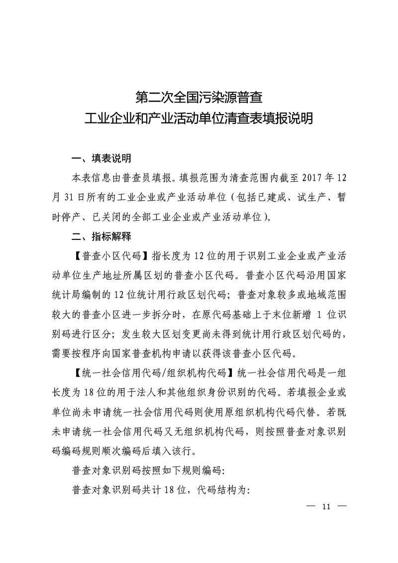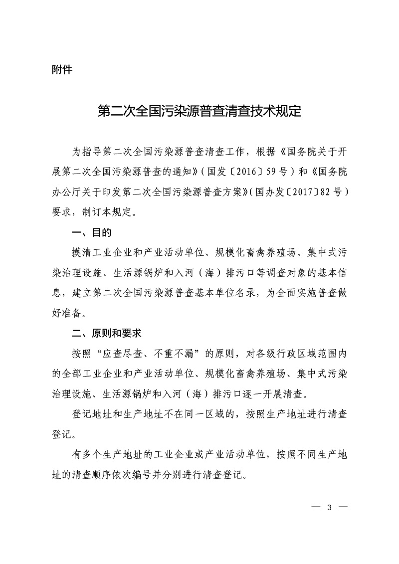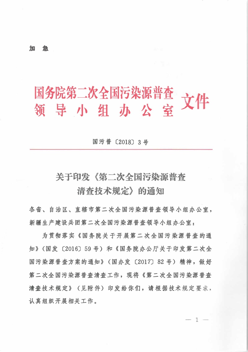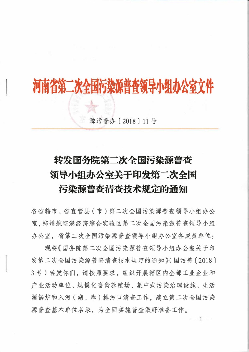 豫污普辦【2018】11號轉發國務院第二次全國污染源普查領導小組辦公室關于印發第二次全國污染源普查清查技術規定的通知