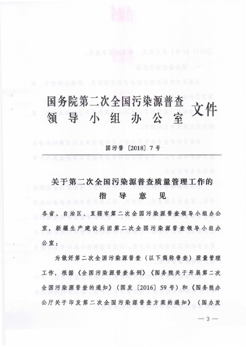 豫污普辦【2018】16號轉發關于第二次全國污染源普查質量管理工作的指導意見