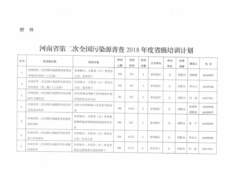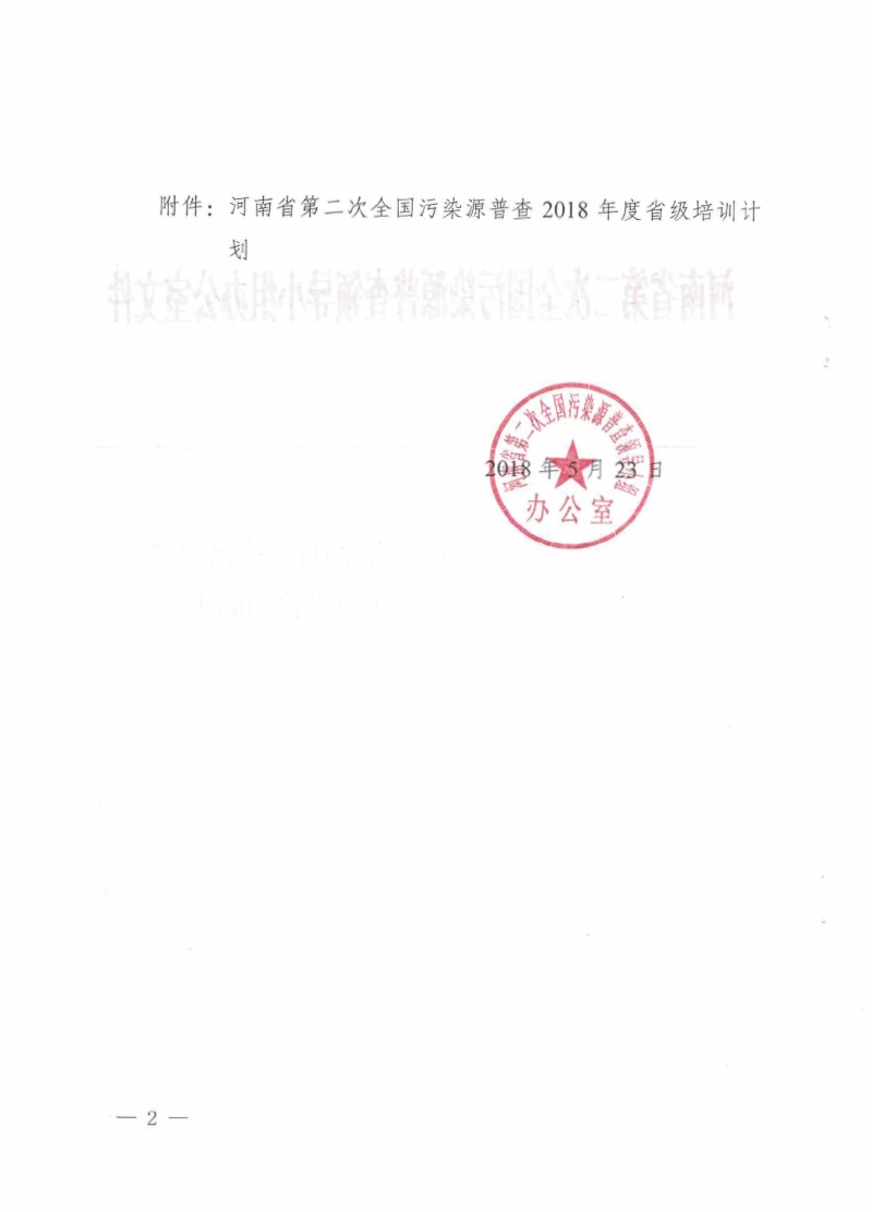 豫污普辦【2018】22號關于印發河南省第二次全國污染源普查2018年度省級培訓計劃的通知
