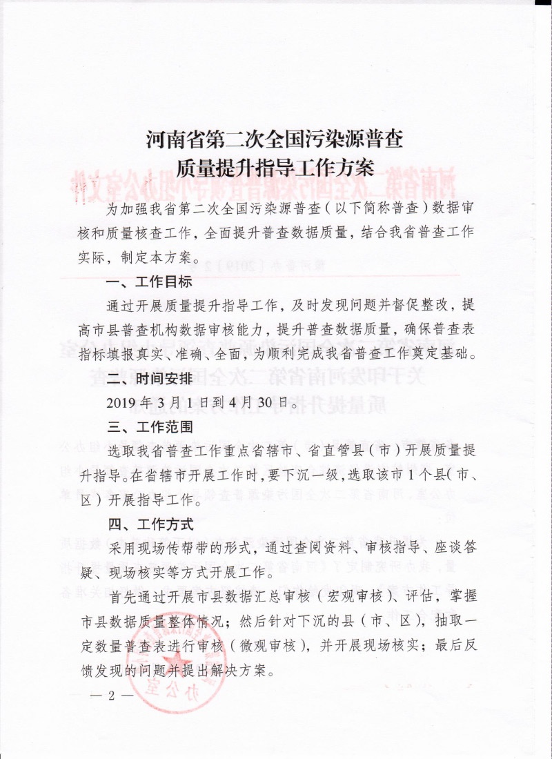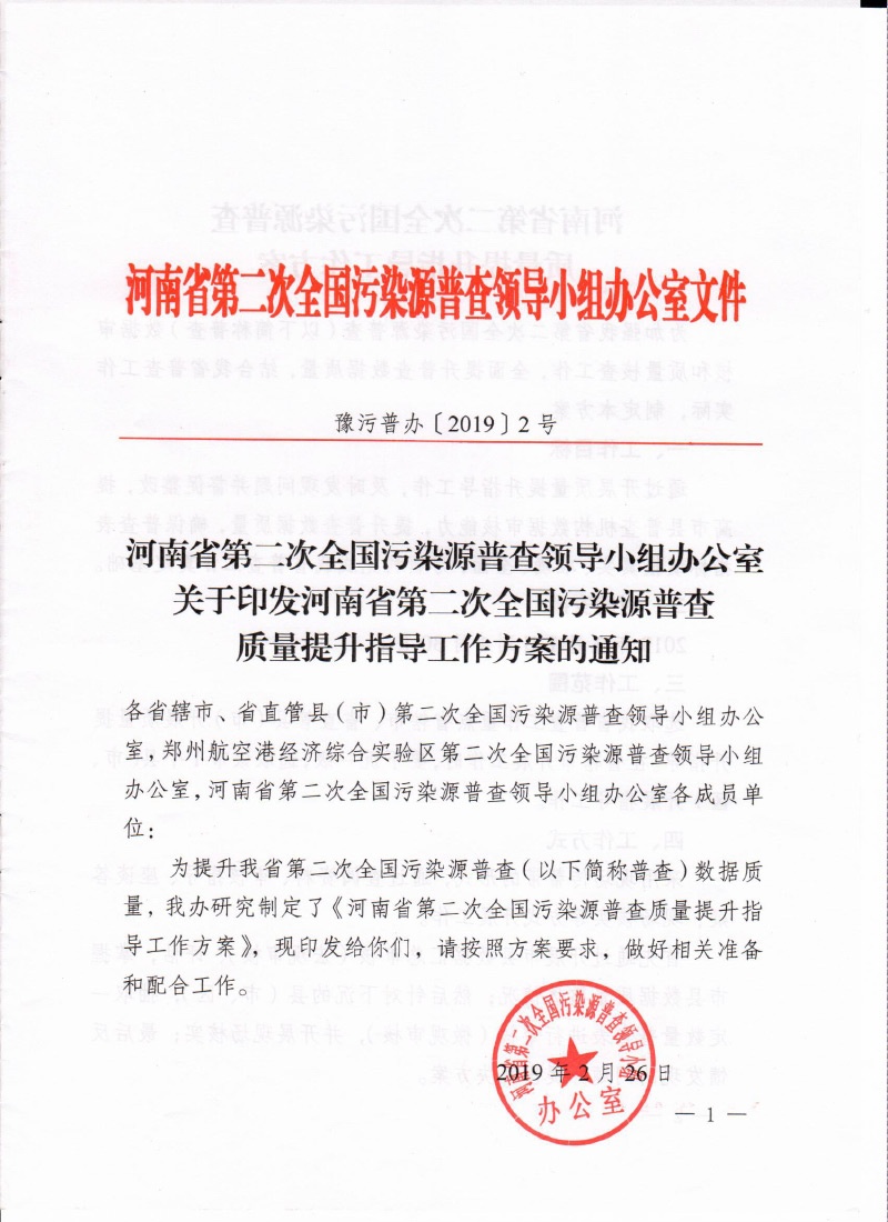 豫污普辦【2019】2號關于印發(fā)河南省第二次全國污染源普查入戶調查階段質量提升指導工作方案的通知